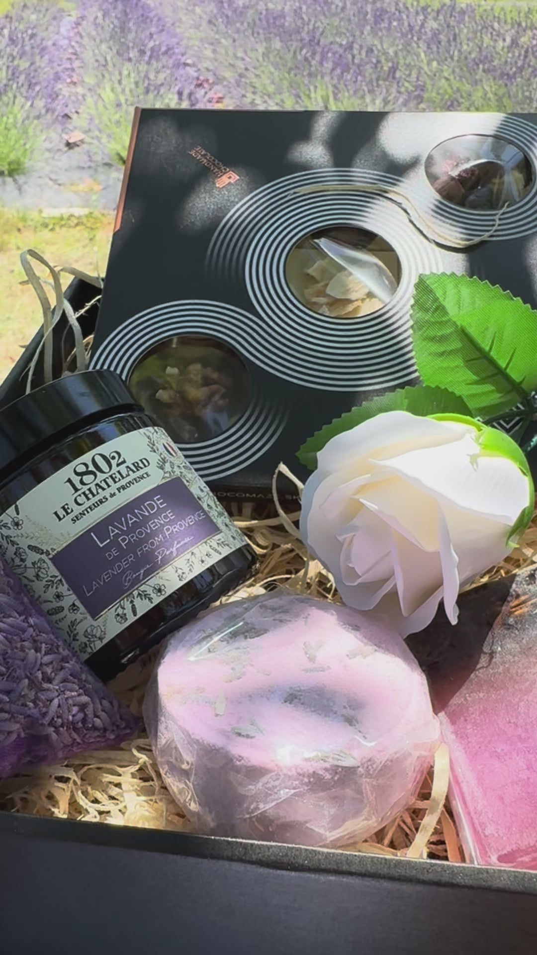 Box neoslavuje, ale prináša pokoj, ticho a úprimný súcit. Obsahuje starostlivo vybrané produkty s levanduľovou tematikou, ktoré navodzujú upokojujúcu a relaxačnú atmosféru. Použitá levanduľa pochádza z nášho vlastného poľa, čo dodáva boxu osobitý a poctivý charakter.